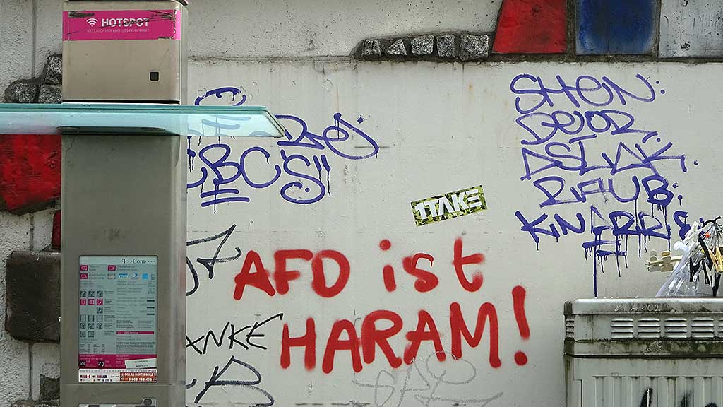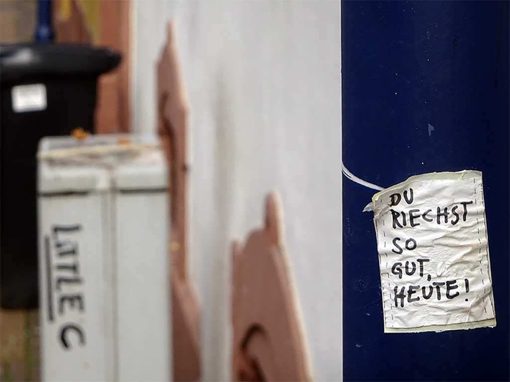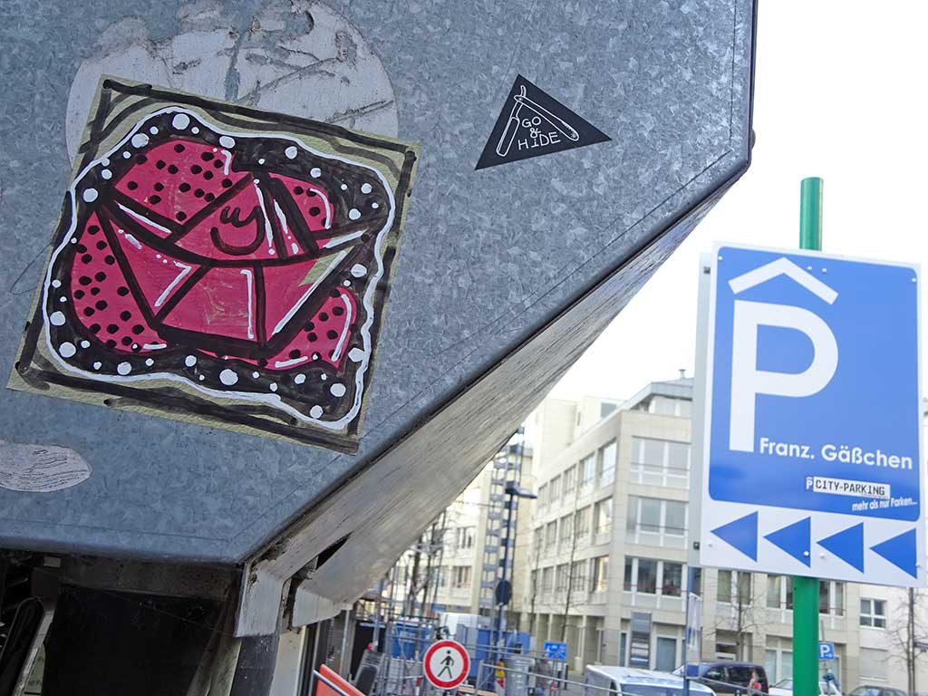 20 Fotos aus dem urbanen Raum Offenbachs, mit allerlei Parolen, Slogans und Sprüchen, gedruckten und handgemachten Aufklebern, Hashtags, Fratzen, Buchstaben und vielem mehr.