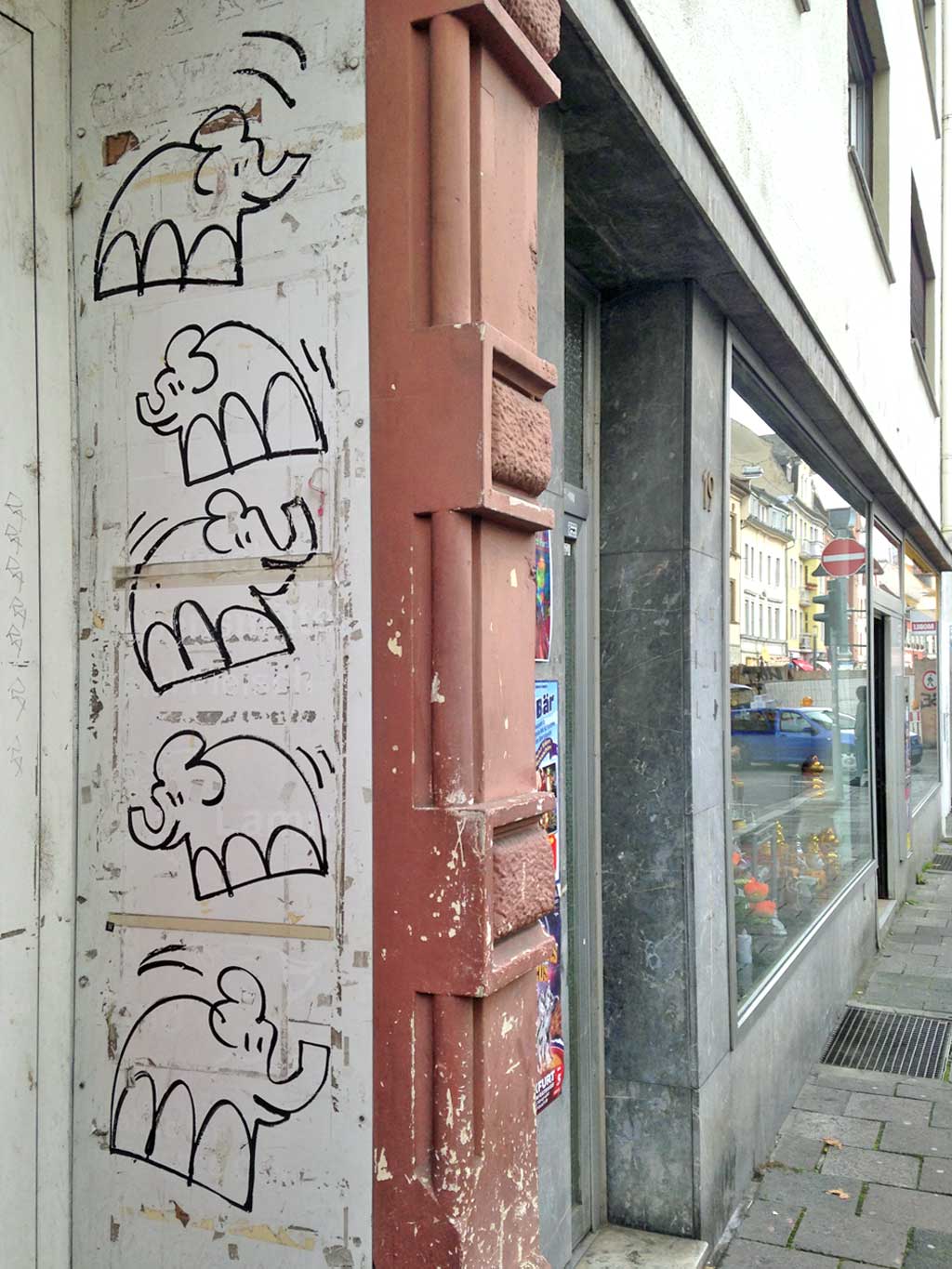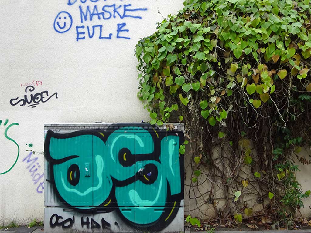 Offenbacher Mischkonsum im November, u.a. mit Aufklebern, Parolen, possierlichen Tierchen, Stromkastenumgestaltungen und dem gewohnten Buchstabenallerlei aus der Dose.