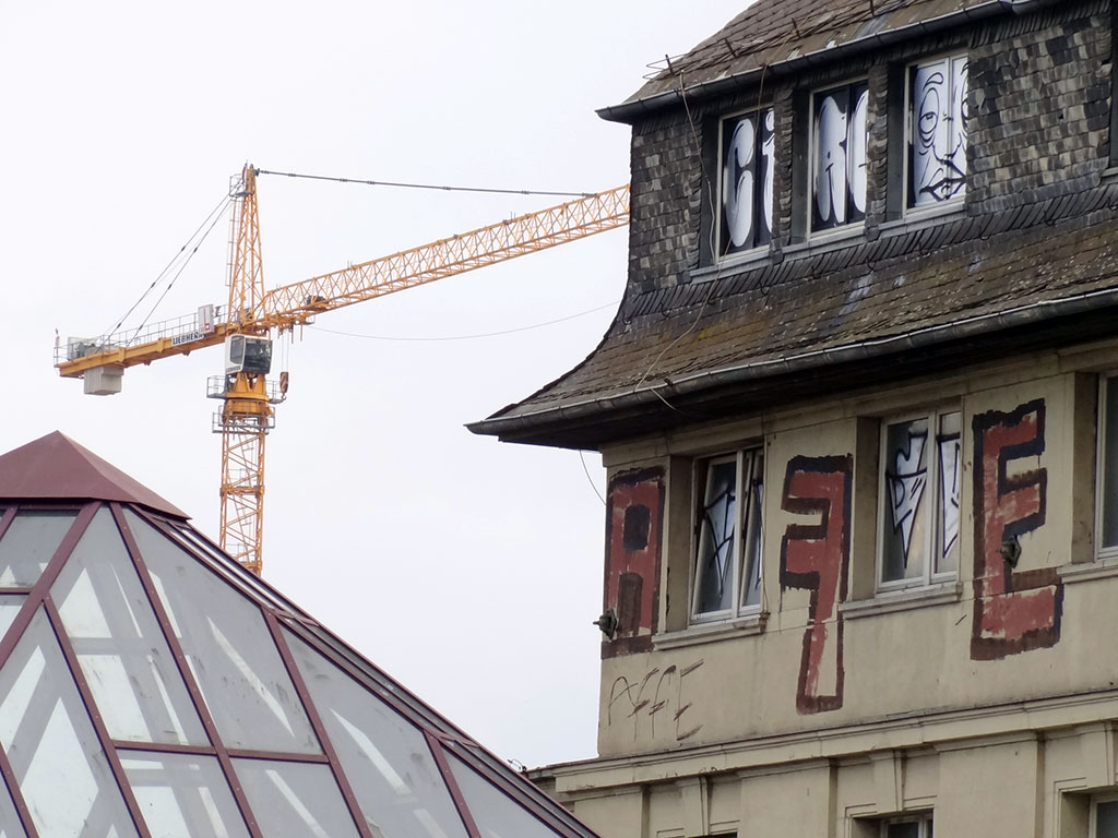 Erst als das Ende der Großmarkthalle besiegelt war und der Neubau der Europäischen Zentralbank begann, habe ich den Ostbahnhof in Frankfurt für mich entdeckt. In dieser Zeit entstand auch underARTconstruction, ein Projekt, welches Graffiti-Künstlern das legale Bemalen des Bauzauns eben jener EZB am östlichen Mainufer ermöglichte. Drei Gründe also, sich regelmäßig in den Osten der Stadt zu begeben: Abchecken wie weit die Arbeiten am EZB-Neubau fortgeschritten sind, Graffitis am Bauzaun bewundern und auf den Weg dorthin einen kurzen Aufenthalt am Ostbahnhof, mit seinem morbiden Charme, einlegen, wohl wissend, dass auch seine Zeit bald kommen wird, wie so vieles in Frankfurt, und besonders in dieser Gegend des Ostends.