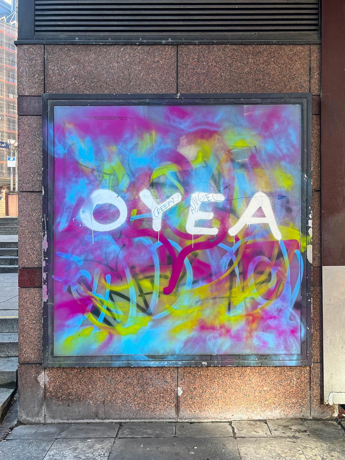 Geschmiere, Kritzeleien oder Straßenkunst? In der Frankfurter Innenstadt und Altstadt sind mir einige bunte, besprühte Flächen aufgefallen, die gar nicht mal so weit entfernt sind von der „Touristik“-Lackierung der DB Gebrauchtzug. Ein konkretes Motiv steht bei diesen urbanen „Leinwänden“ allerdings nicht im Mittelpunkt, wenngleich sich noch teilweise ein Gesicht und eine Blume erkennen lassen.