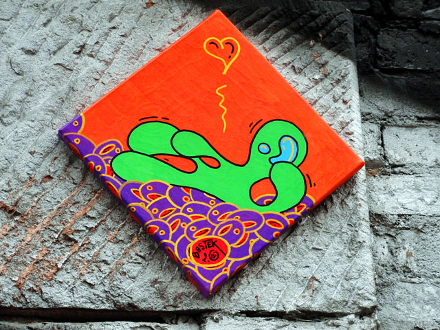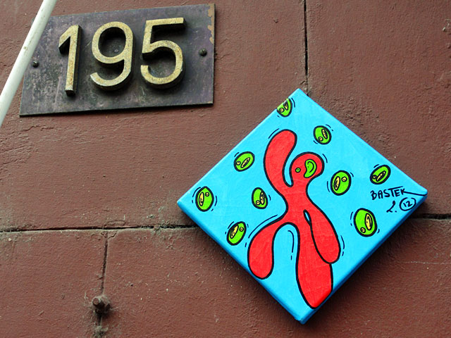 In Frankfurt tut sich ja einiges in Sachen temporärer Stadtverschönerung. Neu in der Stadt begrüßen wir den aus Frankreich angereisten Künstler Bastek, von dessen Werke ich drei verschiedene Exemplare vor die Linse bekommen habe.