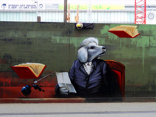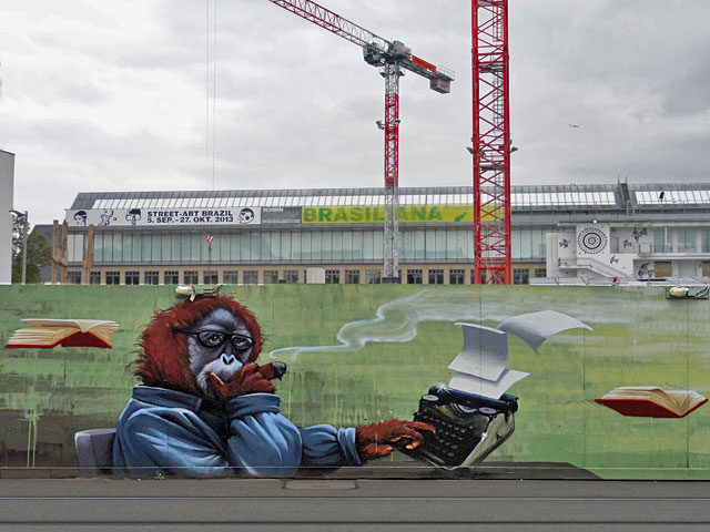 Im Auftrag des Börsenverein des Deutschen Buchhandels entstand für die Initiative Vorsicht Buch! in der Braubachstraße in Frankfurt eine etwa 30m lange Graffitiwand. Gestaltet wurde das Motiv, welches die Geschichte des Buchs darstellt, von Guido Zimmermann. Dessen anthropomorphistische Wesen dürften in Frankfurt dem einen oder anderen aufmerksamen Beobachter schon mal aufgefallen sein.