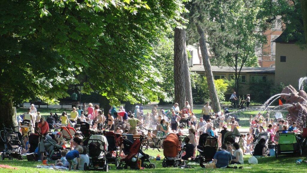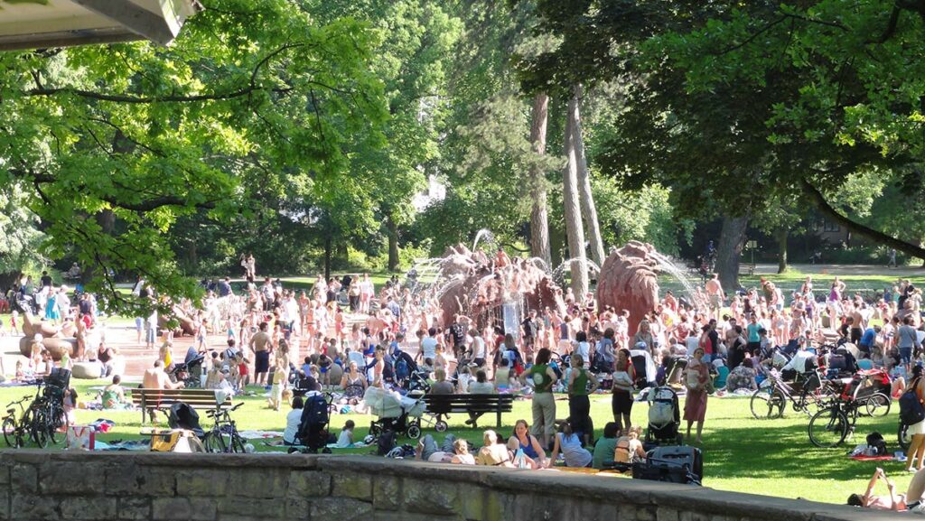 Sommer, Sonne, Sonnenschein und Wasserspiele im Günthersburgpark. Tags:Frankfurt am MainGünthersburgparkSommer