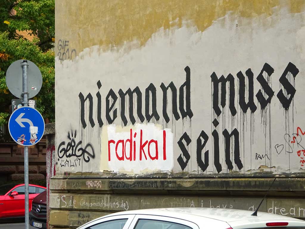 Jetzt lautet der Spruch also „Niemand muss radikal sein“. Am Werk war kein Geringerer als Frankfurts neue Graffiti-Crew: Die FDP. Ein Video von der Aktion gibt es auch. Mit Klick auf den Screenshot oder darunter auf „Direktlink“ gelangt man auf Twitter und kann es abspielen.