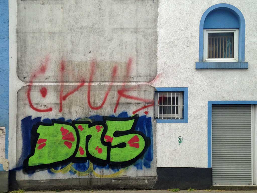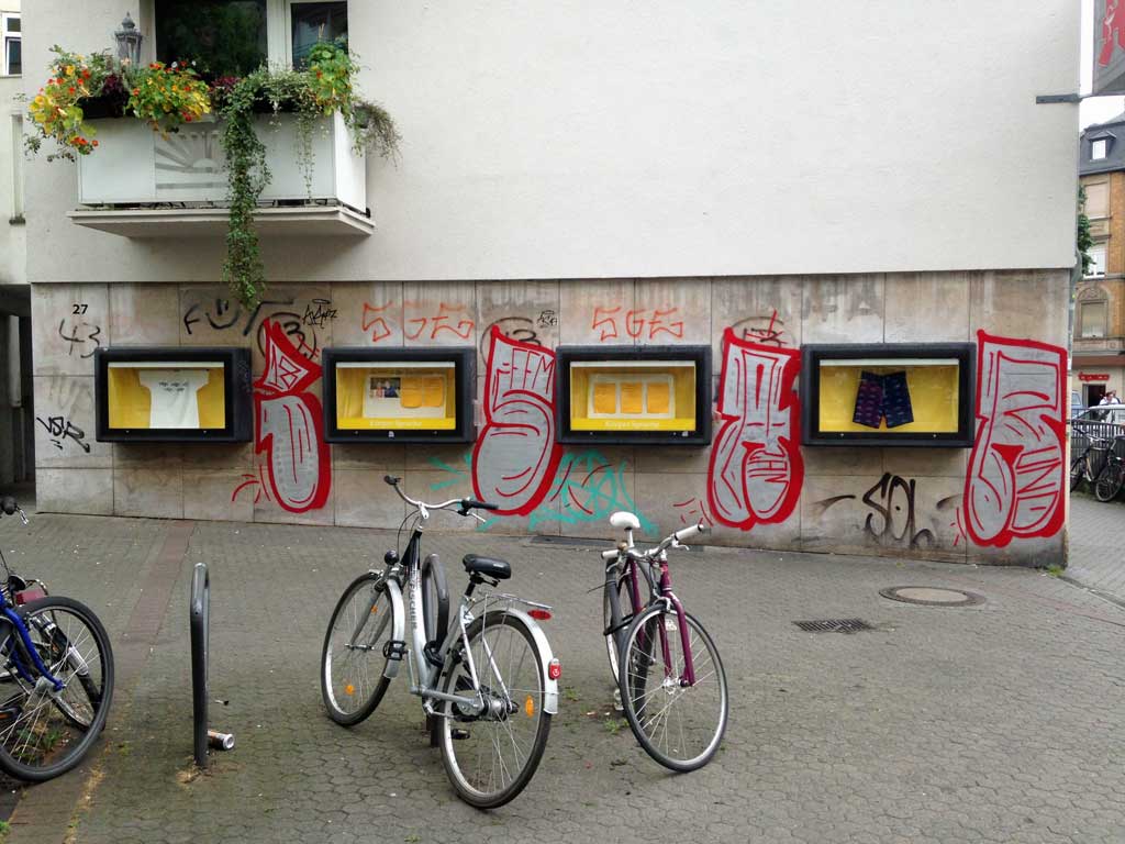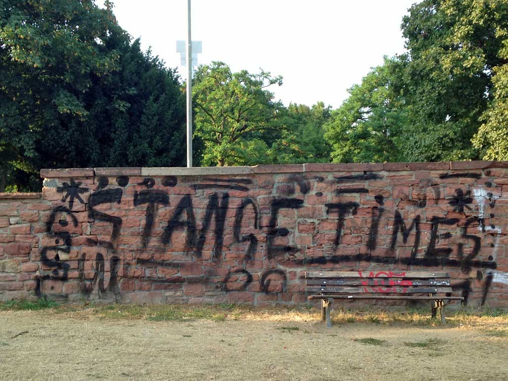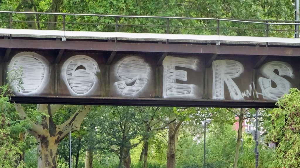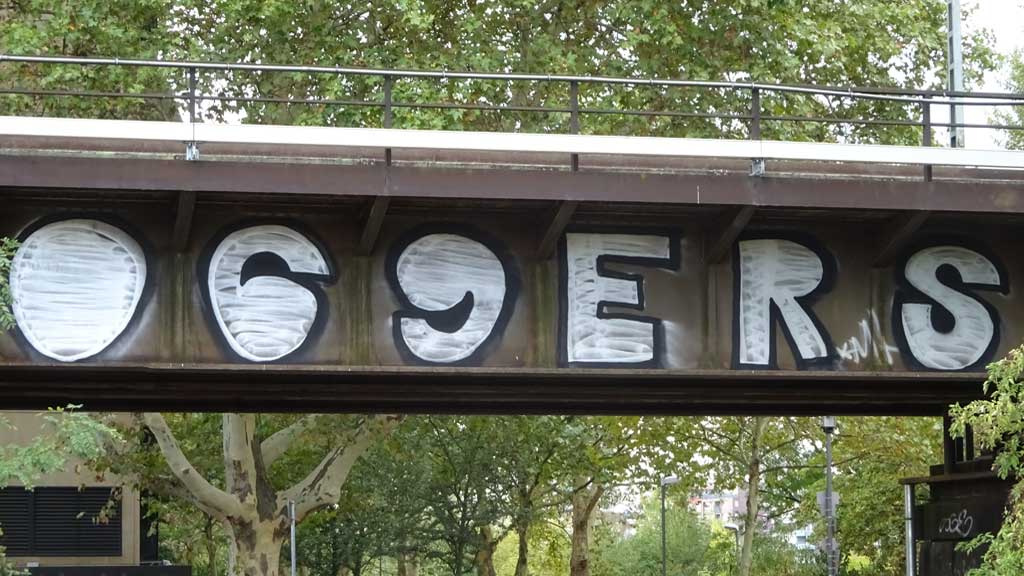 Auch im folgenden Beispiel wurde ein Graffiti angefangen. Diese Fläche wurde aber dann mit einem völlig anderem Schriftzug in Beschlag genommen.