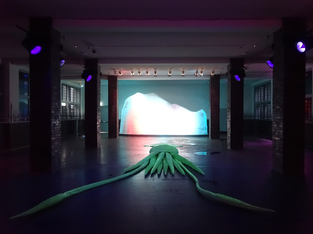 Die Treppe im ZollamtMMK führt zu einem offenen Raum, dessen Herzstück der Körper eines lumineszenten Riesenkalmar bildet. Der zehnarmige Tintenfisch ist auf dem Boden platziert und aus einem leuchtenden Material, das man vom Spielzeug „Creepy Crawlers“ kennt. Im stark verdunkelten Raum verläuft entlang der linken und rechte Seite ein (zunächst kaum erkennbarer) dunkler Zaun und ganz hinten, an der Wand, befindet sich ein Gebilde in Form eines Eisbergs, in dem sich bereits zahlreiche Abdrücke von Handflächen entdecken lassen.